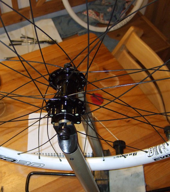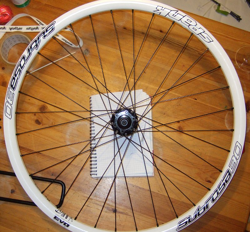 Heute ist die neu bestellte Shimano Alfine 11-Gang Schaltnabe eingetroffen, welche ich am 2Souls Cycles Mountainbike statt der bisherigen Alfine 8-Gang Nabe verwenden möchte. Die alte Nabe funktioniert wie gehabt tadellos, aber die 11-Gang Nabe wollte ich unbedingt ausprobieren. Im Zuge dieses Umbaus wurden Vorderrad und Hinterrad auch mit den etwas leichteren Spank Subrosa30 Evo Felgen ausgestattet, sowie am Vorderrad die sehr leichten Sapim D-Light MTB-Speichen verwendet. Insgesamt ist das Fahrrad also minimal leichter geworden. Das neue 11-Gang Hinterrad wiegt 2430g, das alte Hinterrad wog 2490g (jeweils ohne Felgenband, Verdrehsicherungsringe, Muttern und Schaltzubehör). Am Vorderrad summiert sich die Ersparnis aus leichteren Speichen und der neuen Felge. Das neue Vorderrad wiegt 940g.
