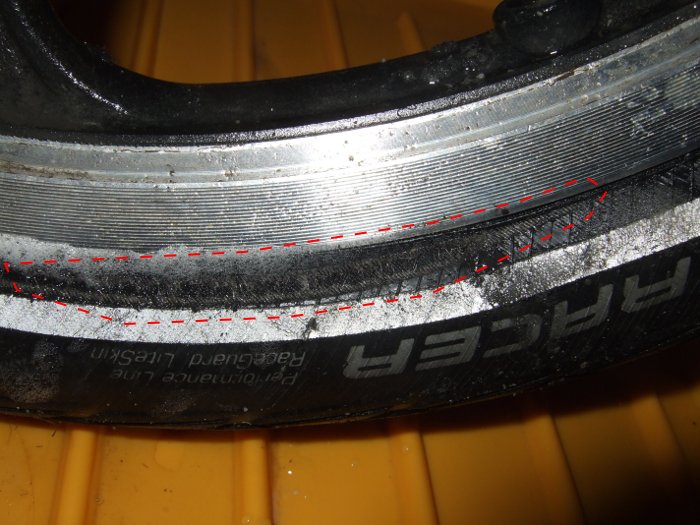 Ob dieses Problem nur in Verbindung mit bestimmten Reifentypen auftritt, oder die Felge generell bei allen Reifen ungünstig geformt ist, kann ich momentan noch nicht sagen. Unklar ist auch, ob dies ein spezielles Problem am mehr belasteten Hinterrad ist. Vorne ist bisher nichts dergleichen passiert.