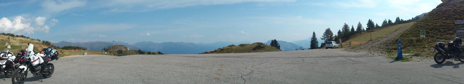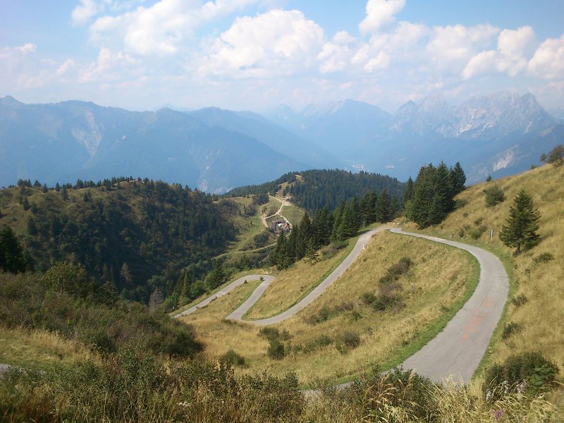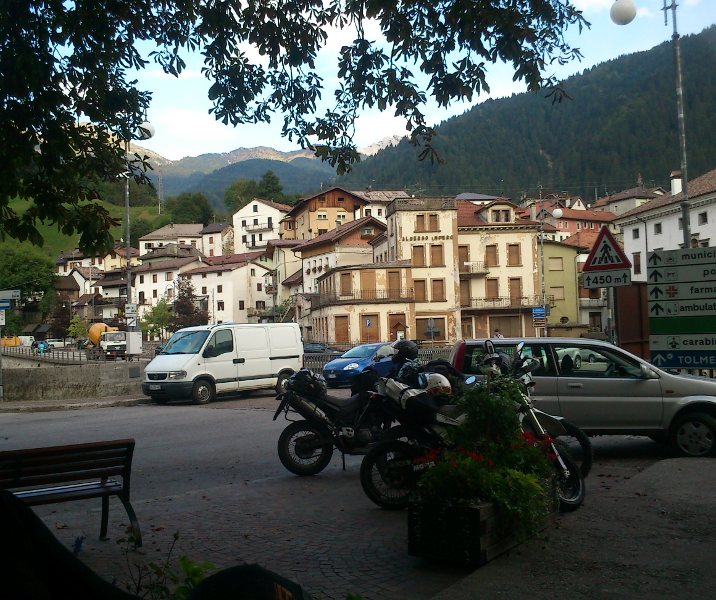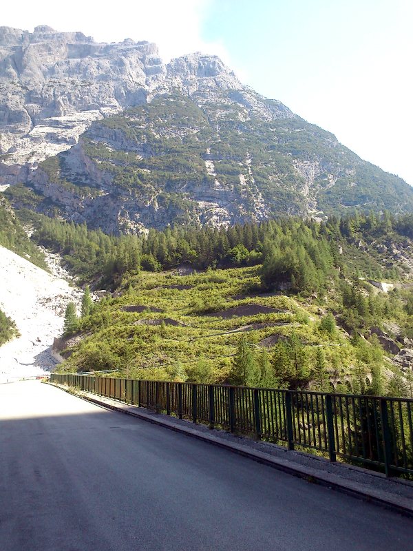 Zur Gegend ist zu sagen, daß es in den Dolomiten noch voller geworden ist, als ich es von früher in Erinnerung hatte. Sogar werktags hat man unablässigen Kolonnenverkehr aus dicken Motorrädern, Autos, LKWs und Bussen. Ich sehe nicht mehr wirklich viel Sinn darin, hier mit Motorrädern zu fahren. Die erstaunlichen und beeindruckenden Dolomitenmassive bewundert man wohl besser zu Fuss oder per Fahrrad. Im Gegensatz dazu waren unsere Strecken im Friaul zumindest werktags vollkommen leer und perfekt zum stressfreien Motorradfahren.