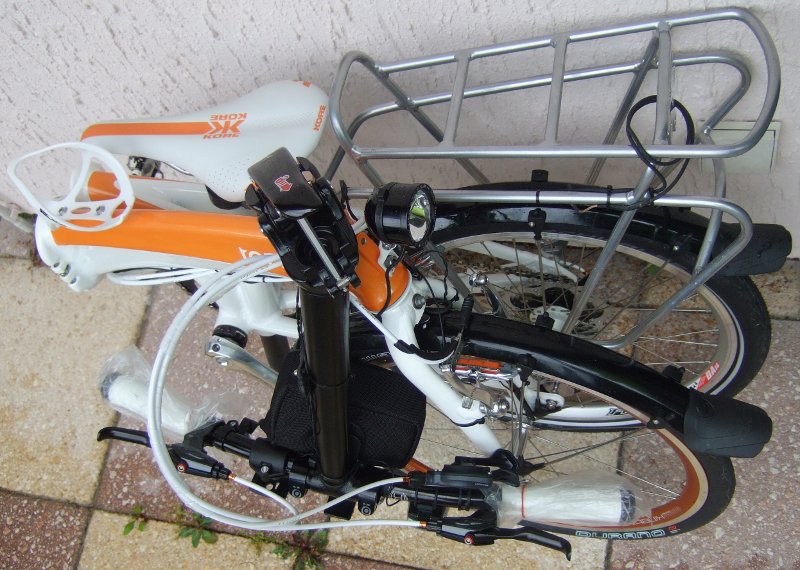 Fürs Tern wurde desweiteren ein B&M Toplight Line mit elektronischem Bremslicht bestellt. Dieses reagiert auf stark abfallende Wechselstromfrequenz des Nabendynamos mit hellerem Aufleuchten.